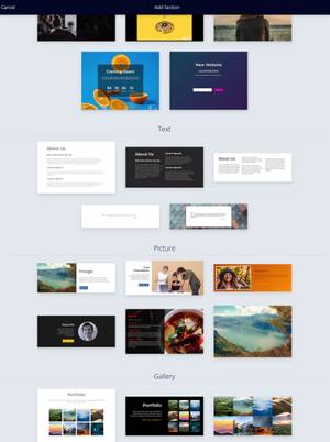 Ajout des styles de contenu de sections (Cliquez sur puis en barre d’outils des sections) qui permettent de les rendre flottant et de faire de nouveaux types de pages comme illustré par ces nouveaux modèles :